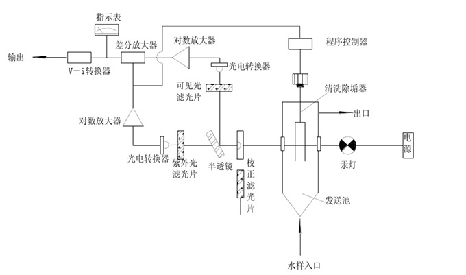 常用的利用光學原理來水質(zhì)污染檢測的方法有很多種,比如比色計等等,本文著重介紹一下光學檢測中比較先進的一種檢測方法:紫外光分光光度法,目前UV有機物濃度檢測是比較普通使用的水質(zhì)有機物檢測的方法之一,主要是利用了有機物在紫外波段200nm-300nm范圍內(nèi)特有的吸收特征,根據(jù)測量溶液的吸光度再經(jīng)過科學的運算之后得出有機物的濃度。該方法是選用一定波長的光照射被檢測物質(zhì)溶液,測量其吸光度,再依據(jù)吸光度計算出被測的成分含量,其計算的依據(jù)是吸收定律,即郞伯-比爾定律。