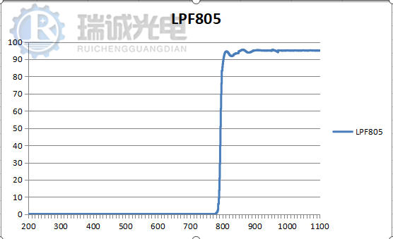 瑞誠光電lpf805nm長波通濾光片,高通濾光片可見光反射,紅外光透過,峰值透過率50%的波長點為805nm,從810-1100nm的光高透過(>94%),200nm-800nm完全截止,截止深度達到OD4,通過附件的實測光譜曲線可以看出,該款濾光片陡度高,透過高,相較于市場上普通的產(chǎn)品來講,優(yōu)勢是非常明顯的。