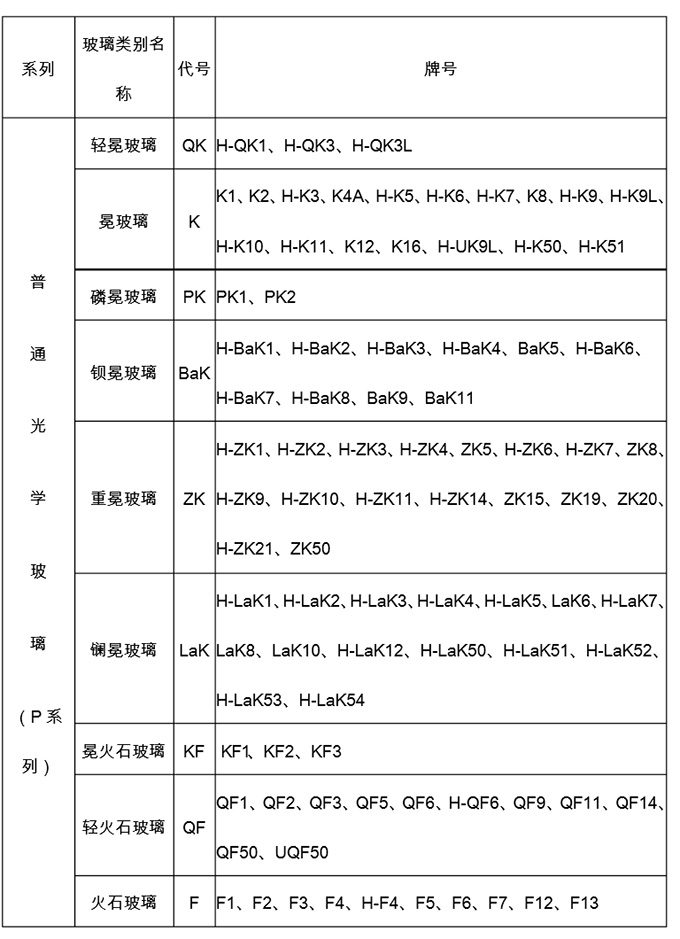 附件-光學玻璃牌號表: