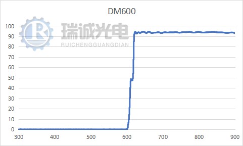 本款二向色鏡基于熒光光團(tuán)成像開發(fā),其主要光學(xué)參數(shù)在300-600nm波段實(shí)現(xiàn)高反射,在625nm-900nm波段實(shí)現(xiàn)高透過,本款二向色鏡設(shè)計45度入射,在高反和高透波段之間的過渡帶小,適合大部分需要熒光檢測的應(yīng)用。