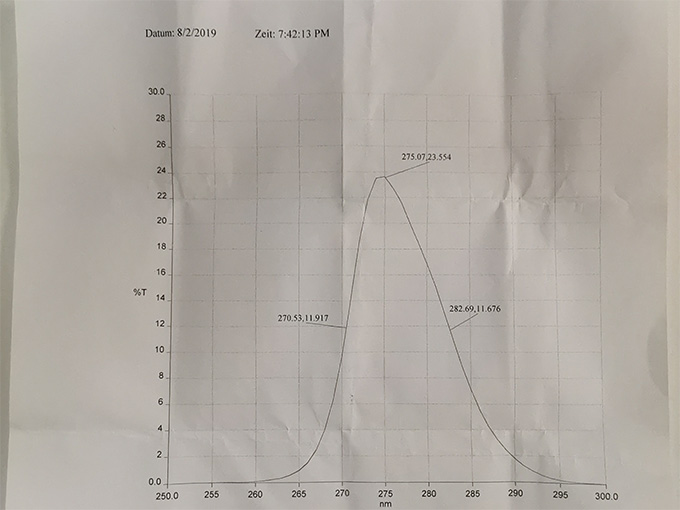 短波UV紫外光,波長介于200-280nm之間,臭氧層對它有強烈的吸收,所以太陽光種這個波段在到地面之間幾乎就被臭氧層吸收了,但是在高新制造中往往要用到這個波段的紫外光,我公司生產的275nm窄帶濾光片便可以滿足該需要。